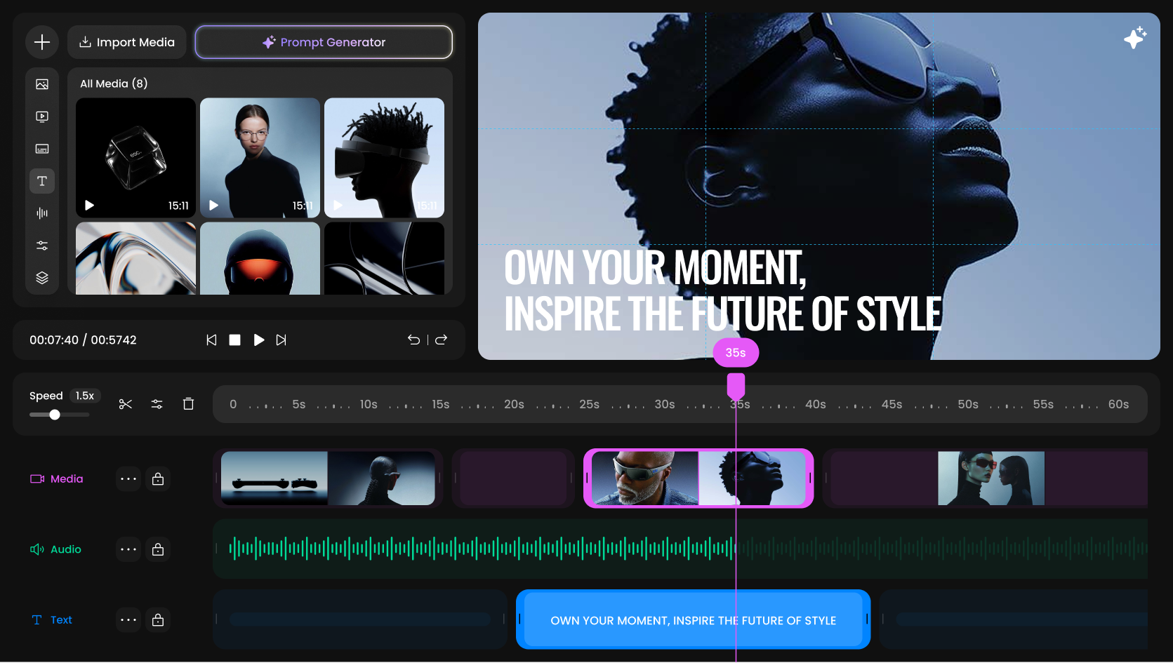 Turn your ideas, scripts, and content into professional videos in minutes. Generate scenes, voiceovers, captions, and more automatically with AI.